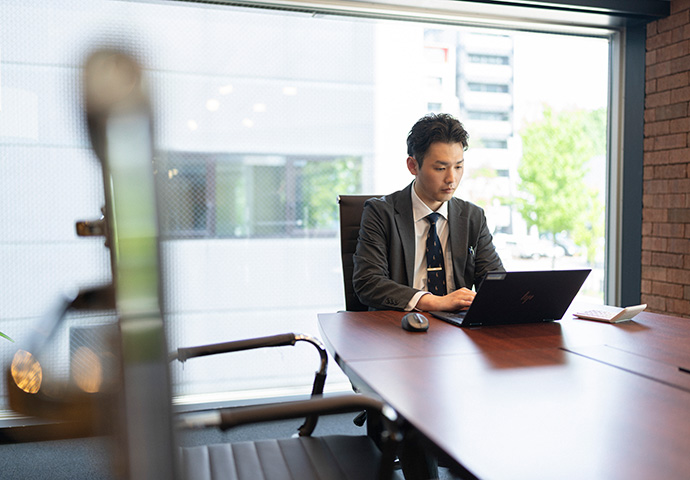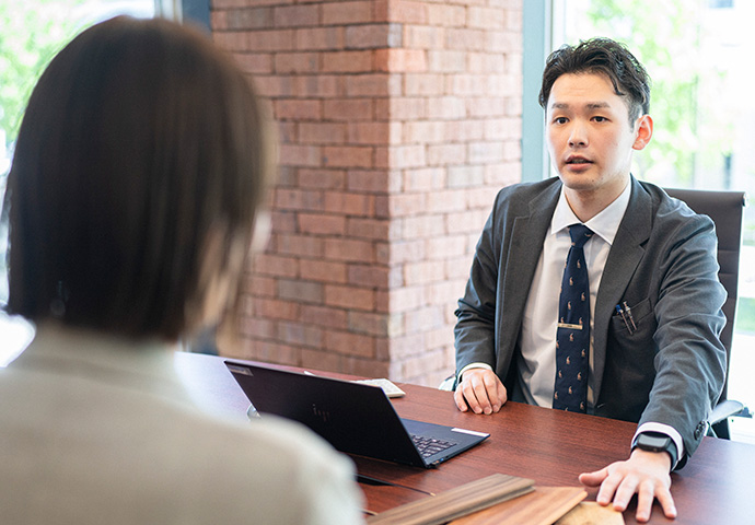 建材事業部は、建材の専門商社です。住宅などに関わる資材を、メーカーさんから仕入れ、工務店さんに販売します。工務店さんによって家の特徴やコンセプトは様々であり、建材もとてもたくさんの種類があります。工務店さんに合ったモノを提案させていただくことが私たちの仕事です。